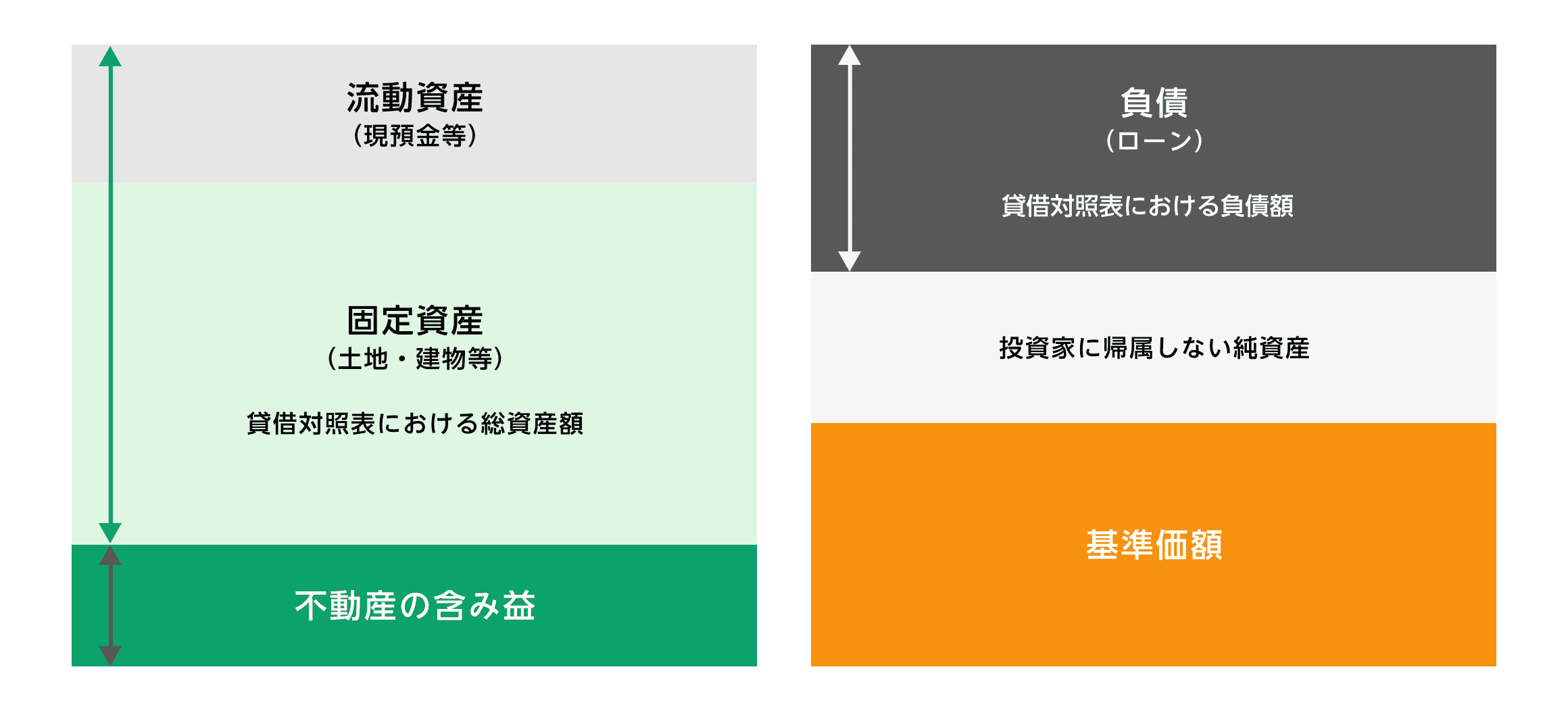 売買価格の基準となる基準価額は、鑑定評価額をベースとした純資産価額となります。各決算期末の貸借対照表における純資産に鑑定評価額に基づく含み損益等を反映させた時価ベースの純資産額を決算発表時に算出し公表します。